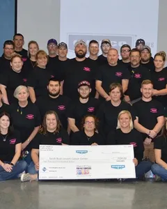 Evapco Midwest in Greenup, IL donated $2,500 to the Sarah Bush Lincoln Regional Cancer Center to support cancer patients in need. Funds were raised by selling cancer awareness t-shirts to its 550 employees in Greenup and Newton.
