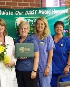 Patients, visitors, nurses, physicians and other employees may nominate a deserving nurse for The Daisy Award and a nurse will be selected by SBL’s DAISY committee every month to received this special honor. Nomination forms are located at www.sarahbush.org and at all SBL clinics and on patient floors. The forms can be submitted to any Sarah Bush Lincoln staff member, or sent via email to [email protected] or mail to Sarah Bush Lincoln, DAISY Nursing Award, 1000 Health Center Drive, Mattoon, IL 61938. For more information, contact SBL DAISY coordinator, Cynthia Edwards, RN, at (217) 238 -3422 or [email protected].