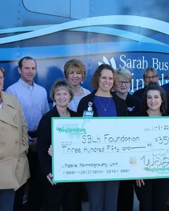 Employees of Washington Savings Bank held a "jeans day" on a Friday in October to raise funds for the Sarah Bush Lincoln Mobile Mammography Unit. Employees could wear jeans and something pink when they donated to help support Mobile Mammography services at SBL. Through their efforts, the bank was able to donate $350.
