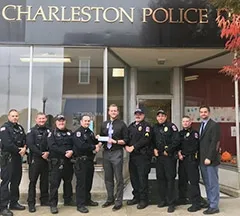 Pictured are members of the Charleston Police Department presenting the check to SBL Regional Cancer Center Supervisor Cody Edwards.