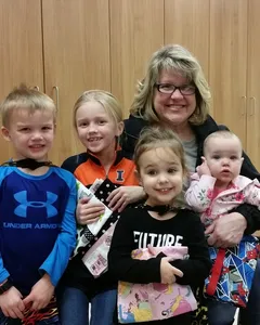 Sarah Bush Lincoln Volunteer Services recently received a donation of hand-sewn pillowcases to help bring a smile and a little cheer to children having surgery. Young patients are given a fun, brightly colored pillowcase to use during recovery from a surgical procedure and then get to take the pillowcase home. The pillowcases were made by Anieta Trame and her grandchildren, who each made their own pillowcase to donate to the cause. Pictured with their donation are (l-r) are Ryan, Ellie, Lucy, Anieta, and Gracie Trame.