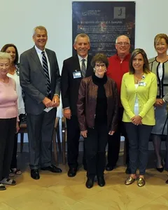 Pictured left to right is: WomenConnected members (first row) Kristen Bliss, Leslie Hill, Doreen Nelms, SBL Health Foundation Director Amy Card, and Kim Lockart; (second row) Susie Hay, Kim Uphoff, Joyce Madigan, Sharon Fox, Debbie Saddoris, Mobile Miracles campaign committee member Steve Wente, SBL President & CEO Jerry Esker, Mobile Miracles Committee member Phil Kepp, DDS, Patty Peterson, Jeanne Cunningham, Sally Bock, Jone Zieren and Erica Stollard.